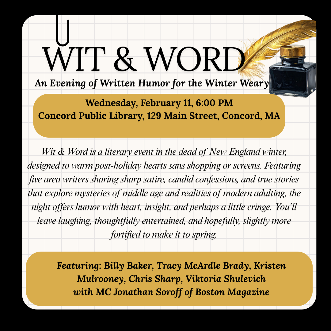 Wit & Word founder Tracy McArdle Brady is a communications executive, award-winning humorist, and published novelist from Carlisle. She has taught at Grub Street, worked in Hollywood, drafted talking points for donut executives, banking professionals and cannabis billionaires, and written for The Boston Globe, Weekly Humorist, Adweek, Fortune, WBUR’s Cognoscenti, and The Belladonna Comedy. She writes about the things everyone thinks but no one says.